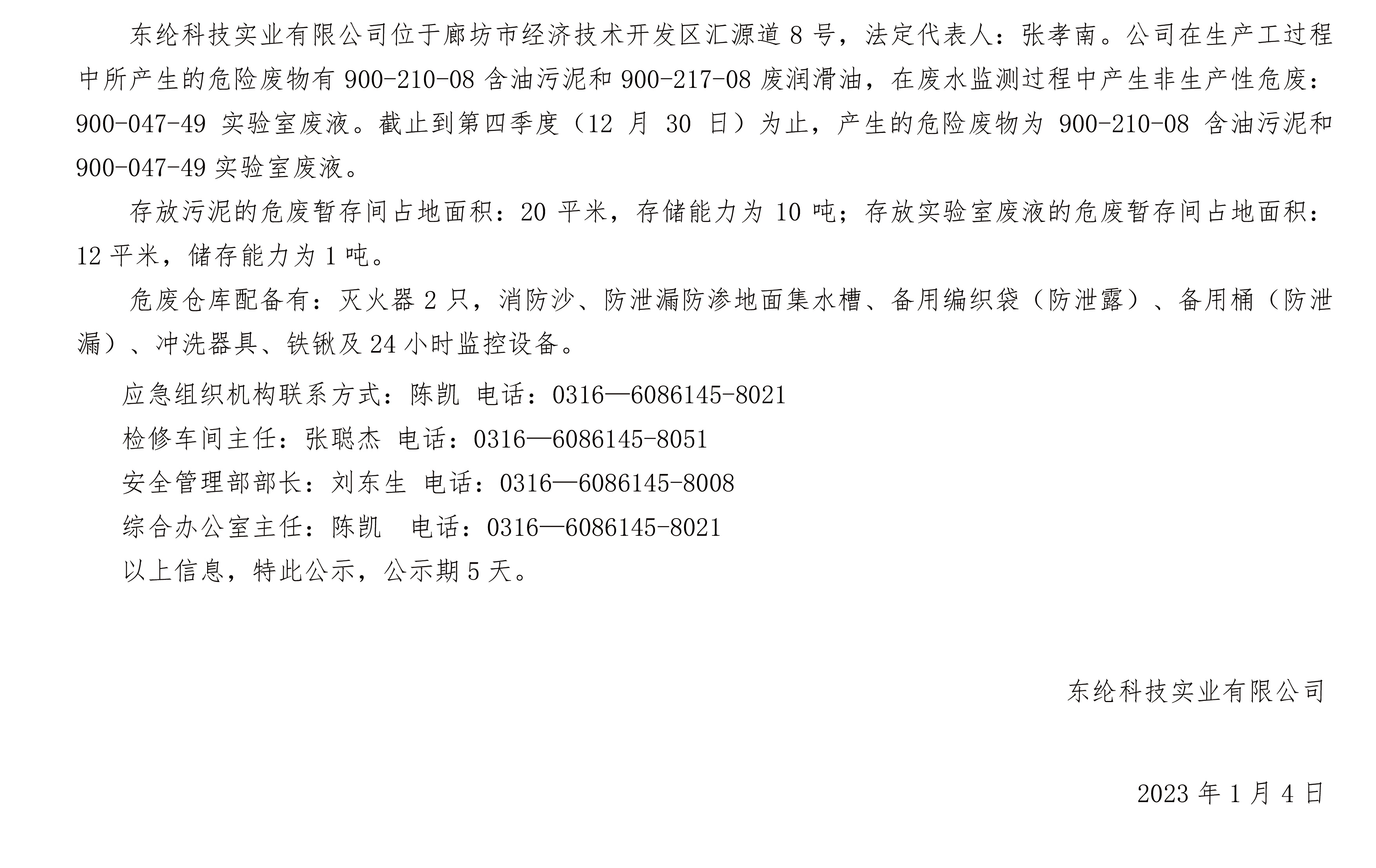 東綸科技實業(yè)有限公司截止到第四季度危險廢物信息公開表